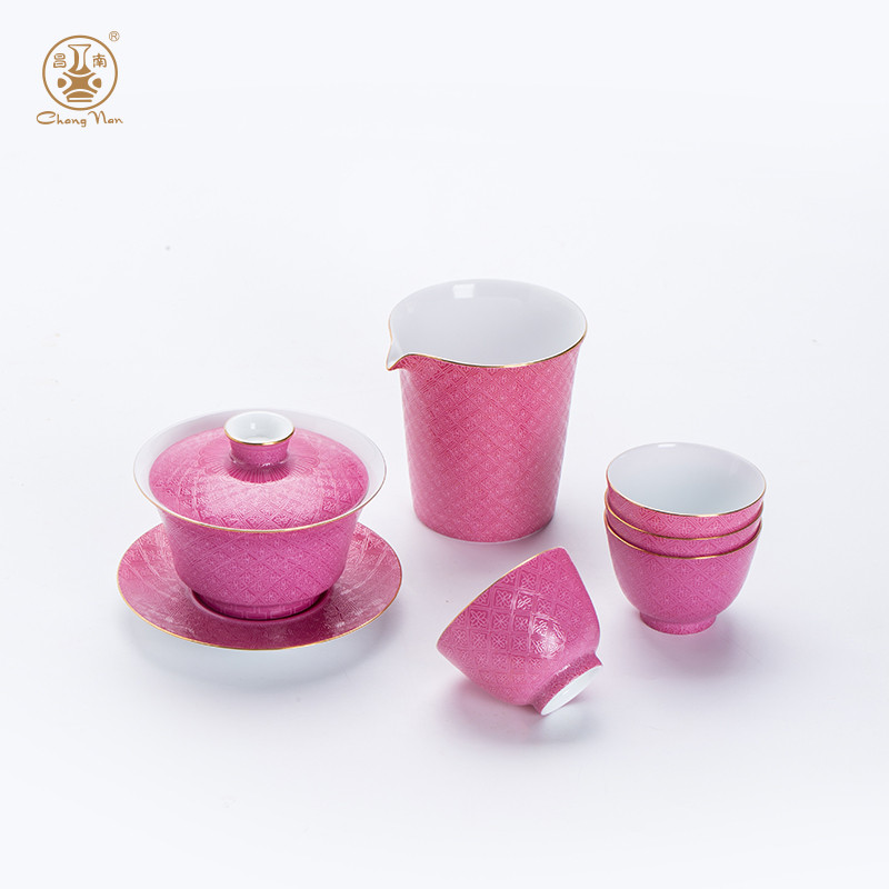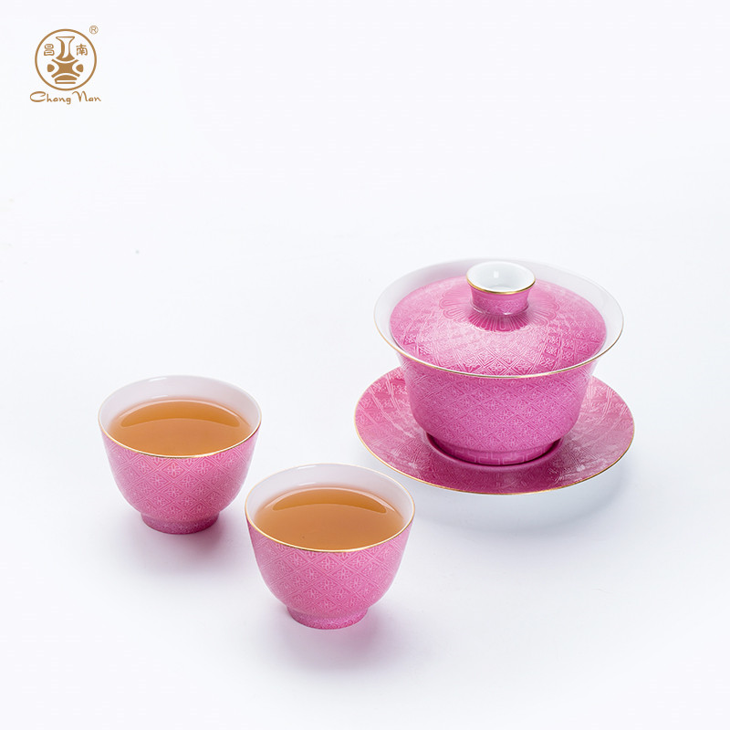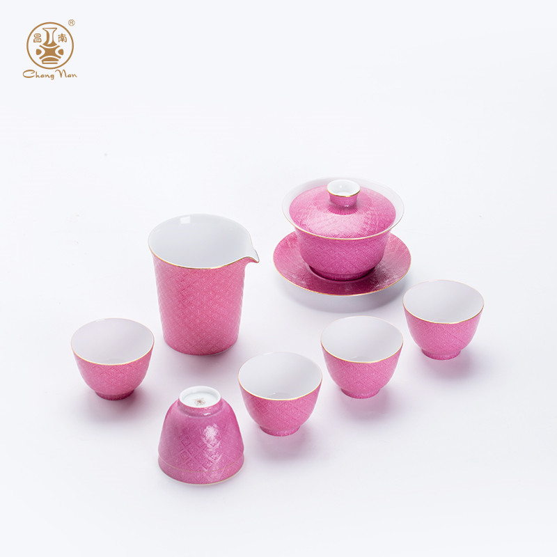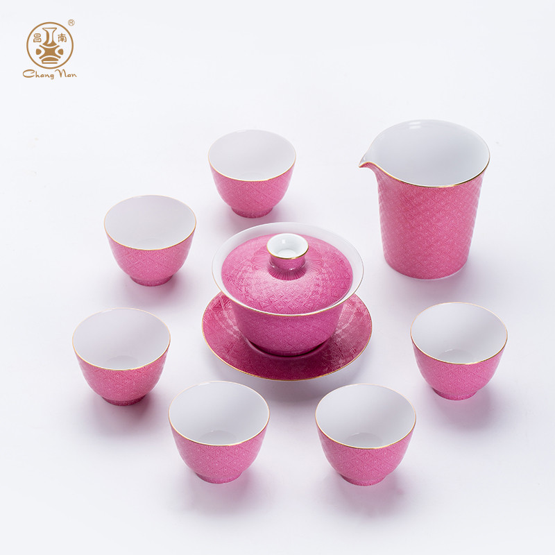 粉彩扒花格?;ㄏ盗须僦t8頭蓋碗套裝